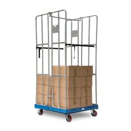 2ścienny kontener siatkowy o nośności 500 kg. Wózek z plastikowej platformy oraz ścian zapinanych klamrami