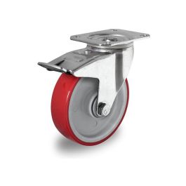 Skrętne kółko z hamulcem fi 100 mm czerwono szare PA / PU