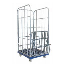 4 ścienny wózek siatkowy typu rollkontener na plastikowej podstawie. Zestawy kołowe z PP ⌀ 108mm. Idealny do transportu wewnętrznego jako wsparcie w łańcuchu dostaw.