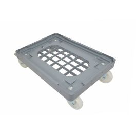 Wielofunkcyjny wózek transportowy na pojemniki Euronorm 600x400x180mm z 4 kółkami obrotowymi, wykonany z tworzywa sztucznego PP. Maksymalna ładowność wózka wynosi 160 kg, a masa własna to 3806 g.