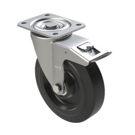 Zestaw kołowy skrętny elastyczna guma Ø 200 mm - z łożyskiem kulkowym i hamulcem, 400 kg