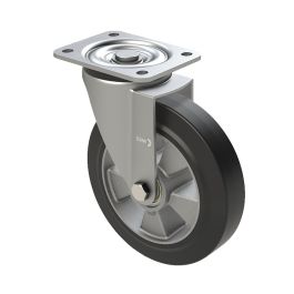 Wytrzymałe koło transportowe z mocowaniem płytowym o nośności 500 kg. Bieżnik kółka wykonany jest z wulkanizowanej czarnej elastycznej gumy naturalnej, a jego współczynnik twardości wynosi 65° - 75° Sh. (COMFORT). Bieżnik jest bardzo odporny na ścieranie, a jego przyczepność do rdzenia jest idealna. Ponieważ bieżnik jest bardzo elastyczny, właściwości toczenia są doskonałe nawet przy maksymalnym obciążeniu. Ze względu na aluminiowy rdzeń, koło jest również odporne na obciążenia szczytowe.