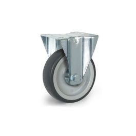 Zestaw kołowy stały, ⌀ 100 mm, rdzeń z polipropylenu, bieżnik z poliuretanu. Konstrukcja na łożyskach tocznych, twardym mocnym rdzeniu oraz elastycznym bieżniku. Materiał bieżnika znacząco redukuje hałas, dzięki temu można z powodzeniem koła montować w wózkach szpitalnych, hotelowych i wszędzie tam gdzie wymagana jest redukcja hałasu pracy. Koło to jest często używane w środowiskach o niskim poziomem hałasu, takich jak szpitale, przychodnie oraz domy starców. Rdzeń koła składa się z polipropylenu, a także ma kolor szary, całość zestawu ma nośność do 100 kg. Zestaw otworów montażowych ma wymiary 80x60 milimetra na ⌀ 9 śrub milimetra. Dzięki tej budowie otworu to koło pasuje do większości wózków, jest to standardowy układ otworów. Koła nie pozostawiają żadnych śladów na podłożu. Można stosować w chłodniach,m natomiast nie nadaje się do użytkowania w komorach mrożenia.