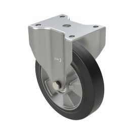 Wytrzymałe koło transportowe z mocowaniem płytowym o nośności 500 kg. Bieżnik koła składa się z wulkanizowanej czarnej elastycznej gumy naturalnej, twardość bieżnika wynosi 65° - 75° Sh.A (COMFORT). Bieżnik jest bardzo odporny na ścieranie, a jego przyczepność do rdzenia jest idealna. Ponieważ bieżnik jest bardzo elastyczny, właściwości toczenia są doskonałe nawet przy maksymalnym obciążeniu. Ze względu na aluminiowy rdzeń, koło wytrzymuje duże obciążenia.