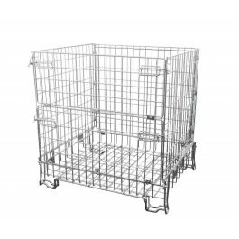 Nowy kosz druciany składany 1200x1000x1200mm. Metalowy pojemnik druciany, galwanizowany o wymiarach zewnętrznych 1200x1000x1200mm . Jego wymiary wewnętrzne to 1160x960x1020mm. Pojemnik o nośności do 600kg. Metalowa konstrukcja ocynkowana elektrolitycznie, by chronić przed korozją. Drucianych składany pojemnik posiada na dłuższym boku uchylną górną ściankę ułatwiającą załadunek produktów. Ponieważ pojemnik jest składany można zaoszczędzić dużo miejsca podczas transportu powrotnego lub magazynowania pustych. W formie złożonej zajmuje jedynie 360mm wysokości. Osiem kontenerów sztaplowanych w stos zajmuje 2600mm wysokości. Pojemniki tego typu stosuje się w przemyśle automotive samochodowym, w farmach małży oraz do składowania odpadów poprodukcyjnych. Pojemnik ten jest wysoce odporny na zniszczenia.