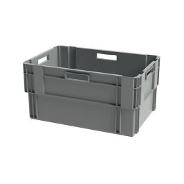 Gniazdowy, plastikowy pojemnik do sztaplowania, ma pełne dno i ściany boczne. Pojemnik wykonany jest z wysokiej jakości tworzywa PP (polipropylen) i ma pojemność 60 litrów.