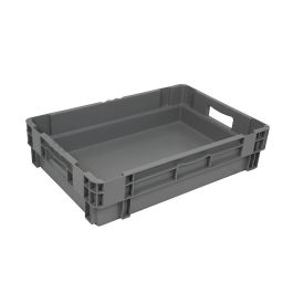 Plastikowy pojemnik sztaplowany 600x400x187mm - gniazdowy. Szary pojemnik o zamkniętych bokach oraz ściance. Konstrukcja zgodna z normami . BUdowa zgodnie z normą europejską optymalnie wykorzystuje przestrzeń magazynową. Zewnętrzne wymiary tego pojemnika to 600x400x187mm. Wymiary wewnętrzne są równe 556x356x168mm a pojemność wynosi 34 litrów. Przy wadze zaledwie 1,6 kg, jest to lekki pojemnik. Na euro palecie można umieścić 88 sztuk. Całkowita wysokość stosu na palecie wynosi 2400 mm.