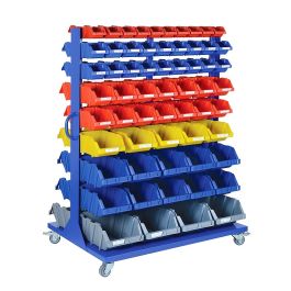 Stojak na kółkach na 126 pojemników magazynowych 1150x850x1530 mm - dwustronny, metalowy