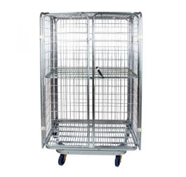 Antywłamaniowy rollkontener o gniazdowej konstrukcji wspomagającej składowanie pustych w magazynie. Oszczędność miejsca odgrywa rolę w magazynowaniu i transporcie. Pojemniki rolkowe są tańsze w transporcie, gdyż zajmują mniej miejsca w przyczepach. Kontener można zamknąć na kłódkę (nie załączona) oraz plomby w celu zapobieżeniu kradzieżom mienia. Wózek posiada drzwi 2-częściowe. Wymiary rollkontenera 1200x800x1800mm. Wymiary wewnętrzne to 1100x750x1500mm. Wielkość oczka siatki konstrukcyjnej kontenera 100x50mm. Cały wózek jest ocynkowany oraz osadzony na 4 zestawach kołowych z czego dwa są skrętne. Koła są wyposażone w niebieski gumowy bieżnik. Koła nie pozostawiają śladów na powierzchniach jezdnych.