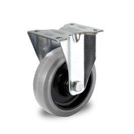 Zestaw kołowy stały ⌀ 125 mm - rdzeń PA / bieżnik guma. Bardzo wytrzymały cichy zestaw kołowy stały o nośności do 200kg, tym samym nadaje się do ciężkich ładunków. Konstrukcja koła wraz z mocowaniem waży 1,1 kg. Koło doskonale sprawdza się tam gdzie wymagana jest redukcja hałasu pracy. Bieżnik gumowy nie pozostawia śladów podczas pracy. Bardzo dobra izolacja akustyczna i większy komfort jazdy niż w innych kołach. Dzięki zastosowaniu wysokiej gatunkowo gumy, koła można stosować na praktycznie każdej powierzchni. Koła z powodzeniem można stosować w chłodniach ale nie mroźniach.
